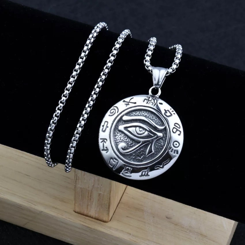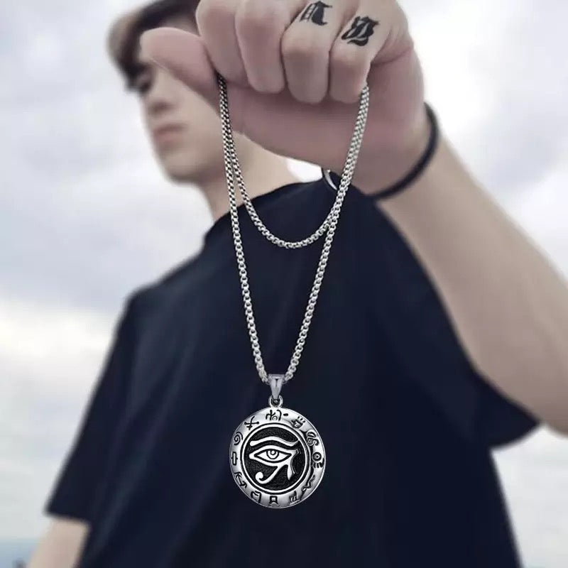 Evil eye 🧿 The evil eye is a “look” that is believed to bring bad luck for the person at whom it is directed for reasons of envy or dislike. The evil eye is a talisman that is meant to protect you from these evil spirits. Bless yourself with luck and fashion with this stunning Evil Eye necklace with pave set zirconia. A watchful eye for protection, this medallion necklace will complete any man’s look! This design features a medallion pendant with an ancient evil eye motif in black and 2 mm box chain.