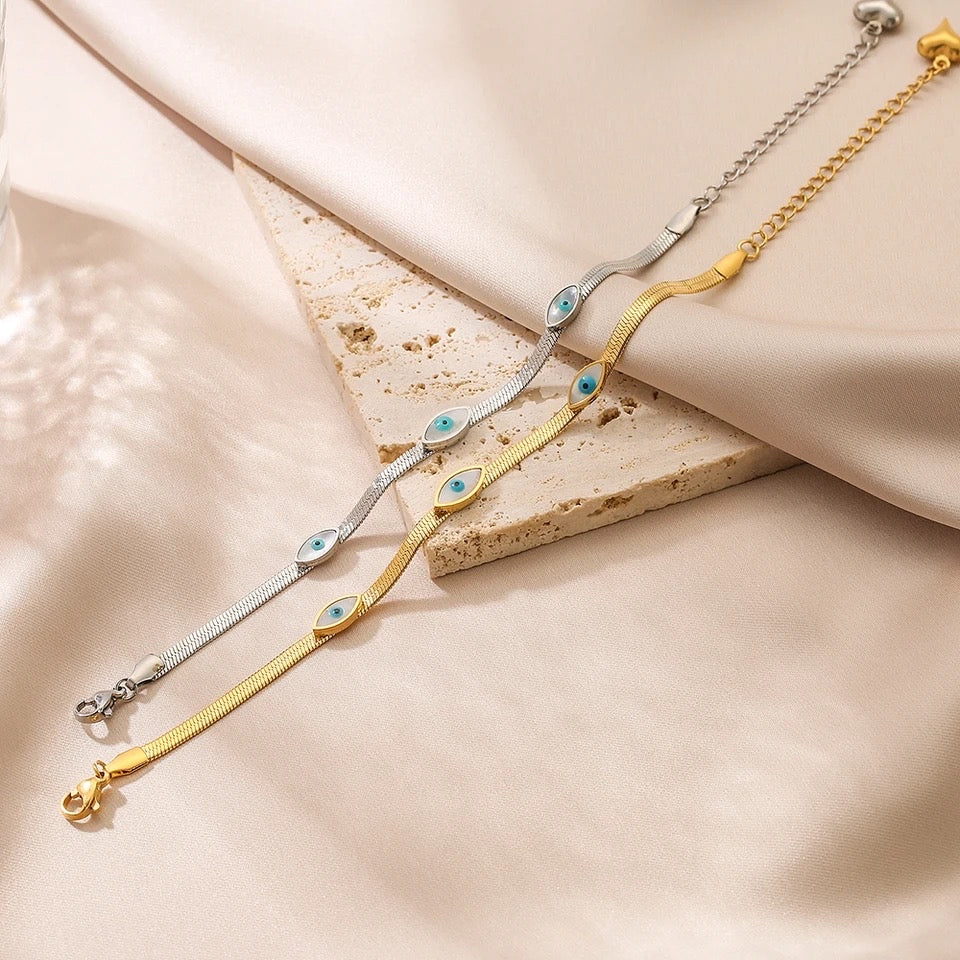 Evil eye 🧿 It is believed that the Evil Eye protects its owners from harmful energy and negativity. he evil eye is a talisman that is meant to protect you from these evil spirits. This is why, in today's times, people use evil eye jewelry as a symbol of protection against bad luck. This is a perfect match if you are looking for:- a bracelet for every day wear or to layer with some other bracelet, a Feminine Elegant bracelet for her as a gift! Whatever the reason may be, this eye is perfect for every occasion. These bracelets are made of Stainless steel and re gold plated; they will not tarnish. Whether you are buying this for nazar purposes (to guard off evil eye) or for style, I'm sure you will love it! Evil eye jewelry makes a great gift for the ones you love !