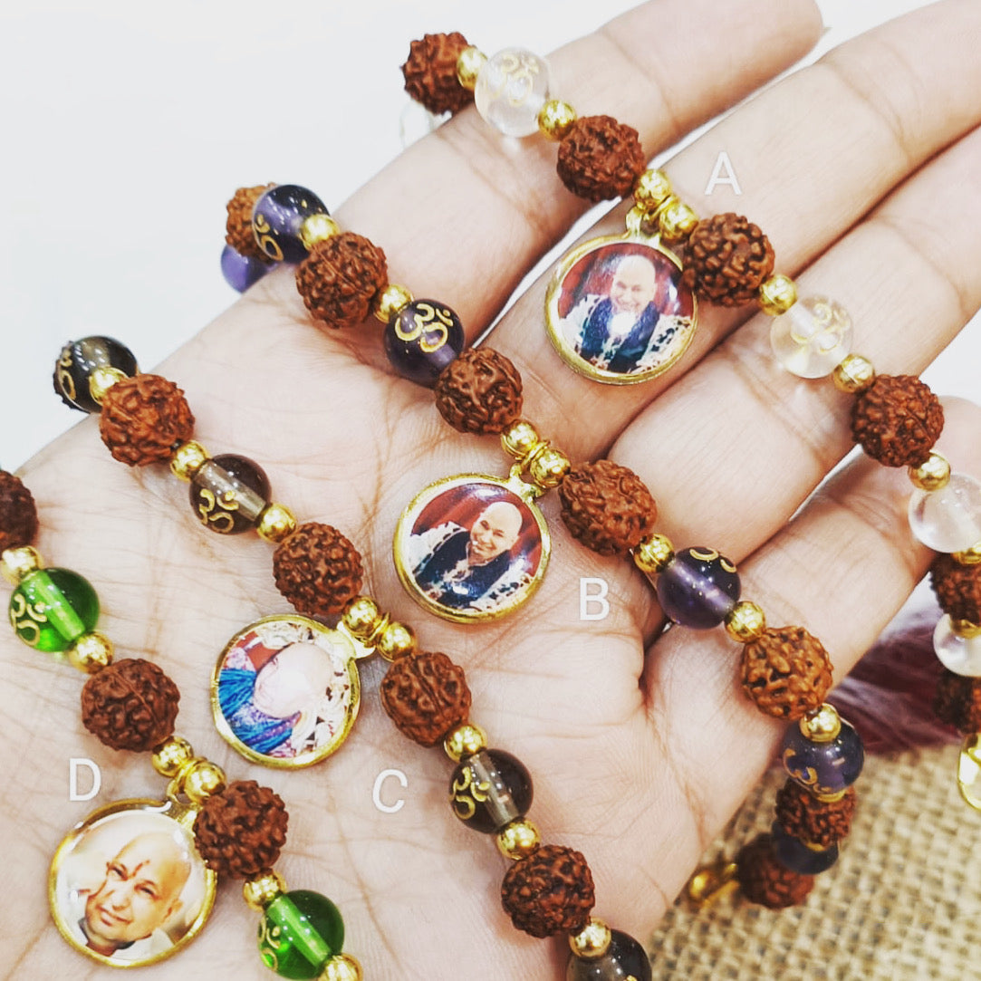 Jai Guruji swaroop Rudraksh bracelets- These beautiful bracelet combine Rudraksh beads with unique crystal bead with Om written on each bead and the centrepiece is a small pendant with Guruji swaroop. it’s a beautiful piece of art and you will definitely love it.