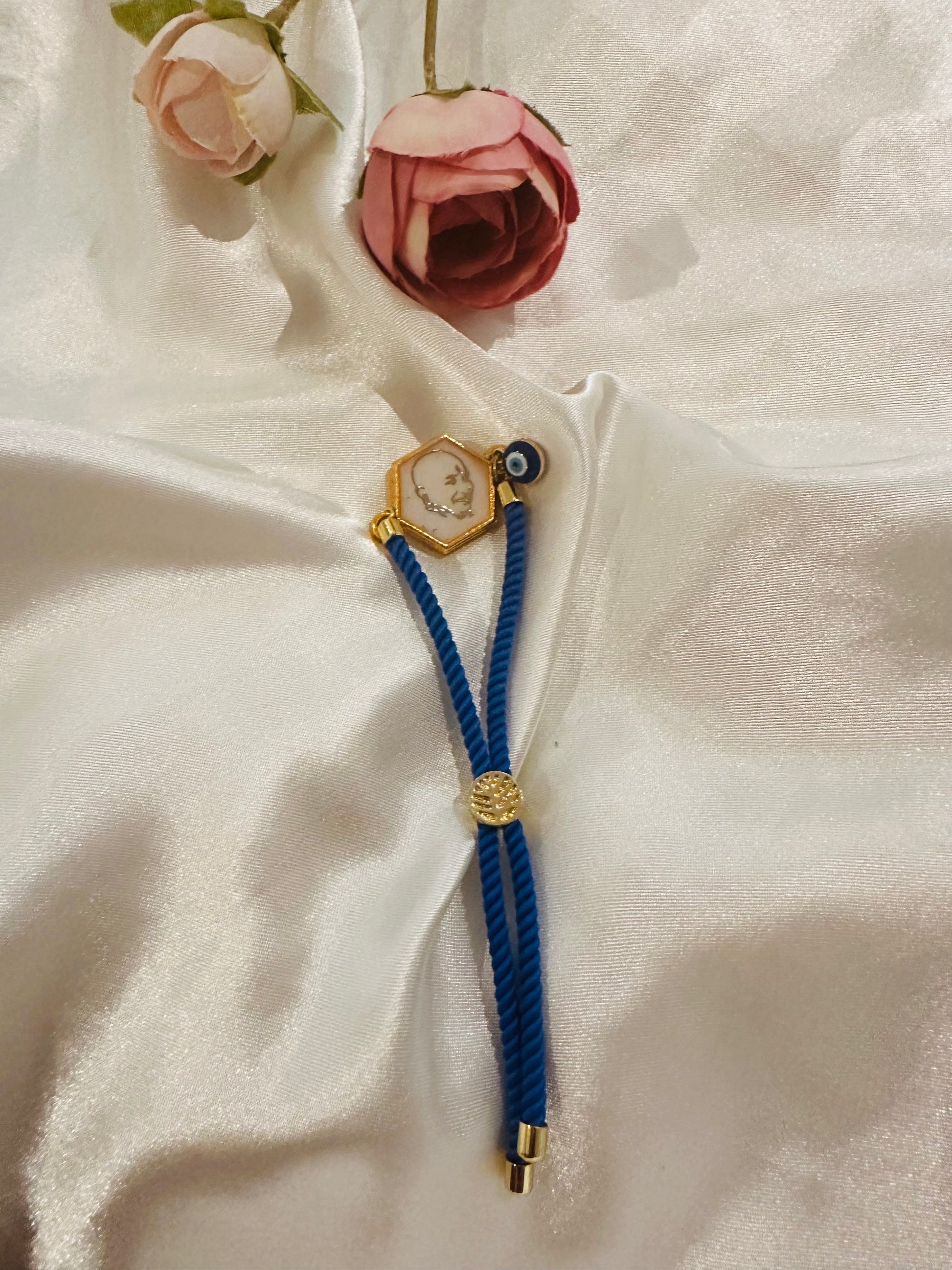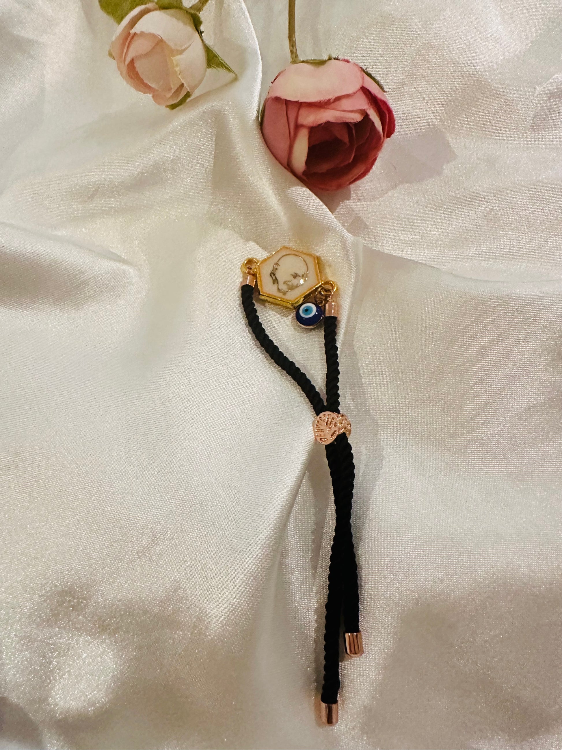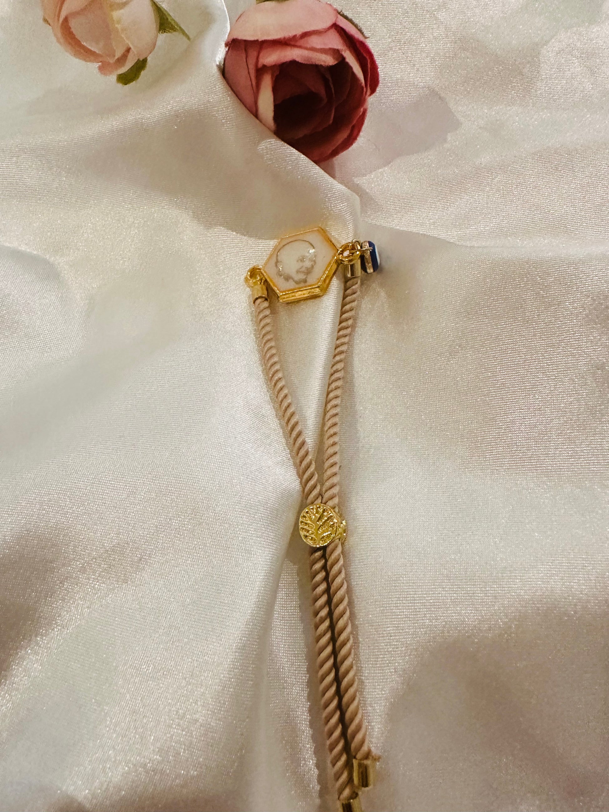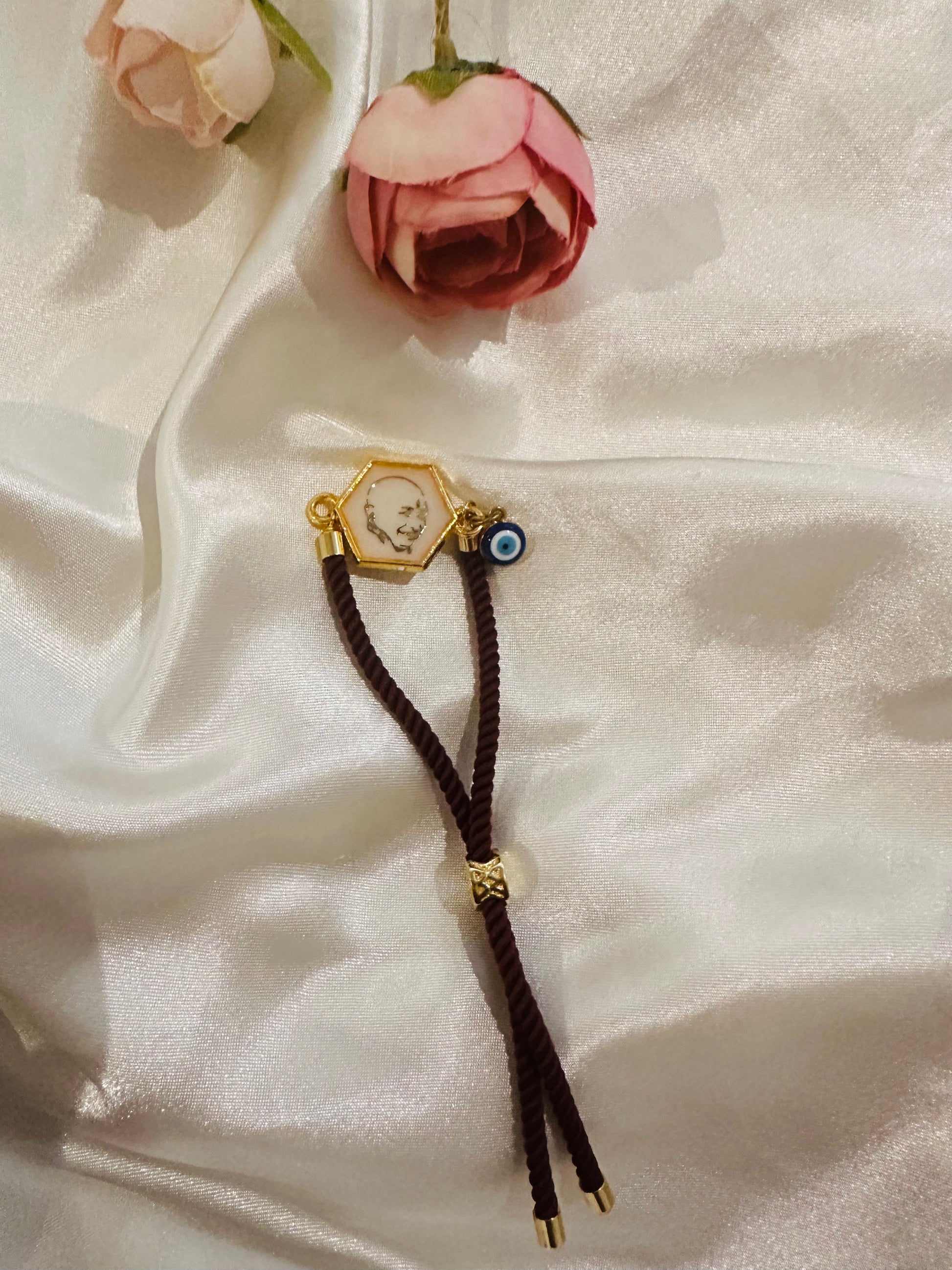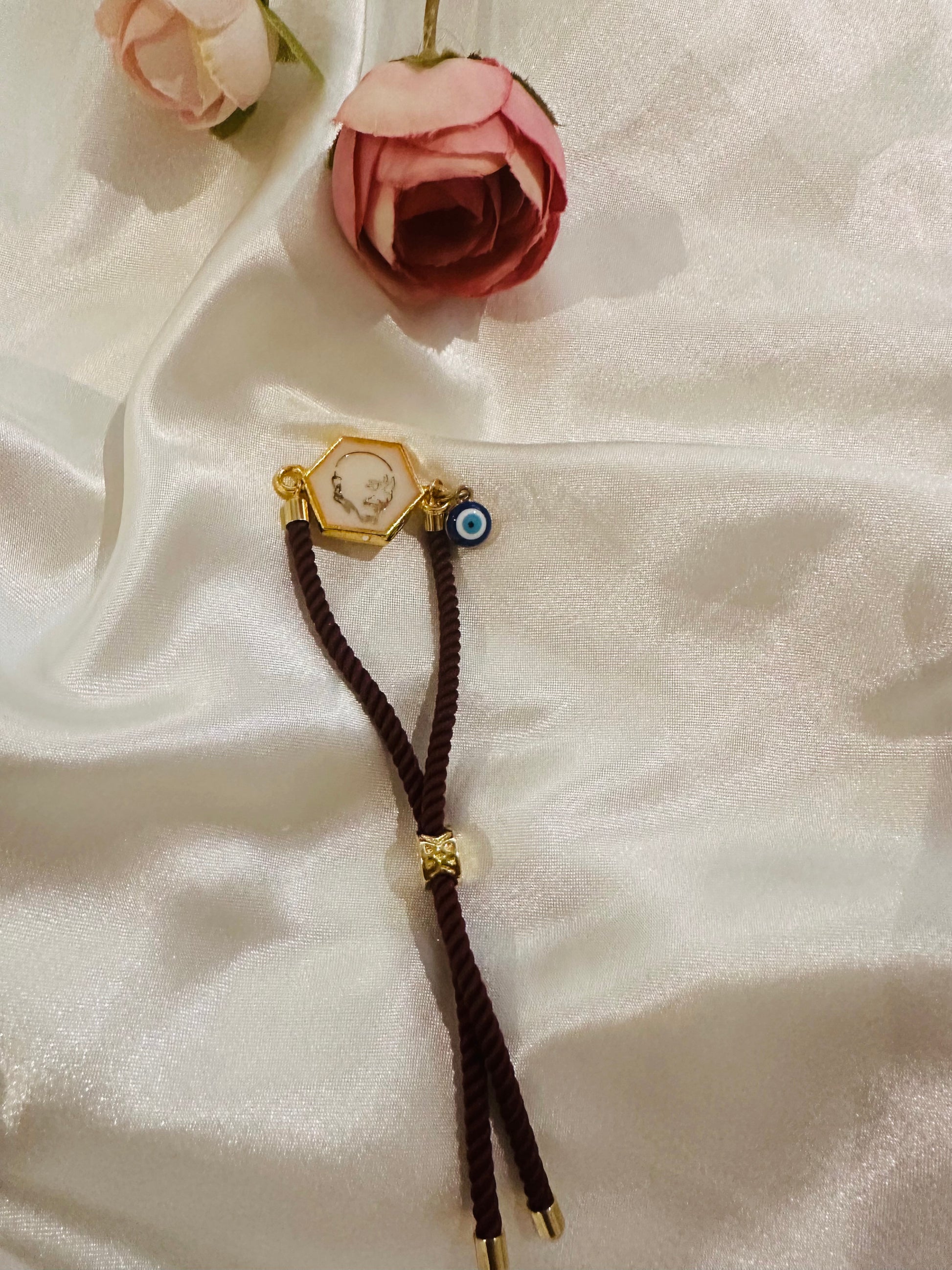 Carry Guruji's blessings with you wherever you go with our Jai Guruji bracelet. This bracelet is not just a piece of jewelry, but a symbol of divine protection and positivity. Made with high-quality materials and blessed by our spiritual experts, it will bring you inner peace and harmony in your daily life. Evil eye charm adds to the beauty of the bracelet, also keeping you protected always !