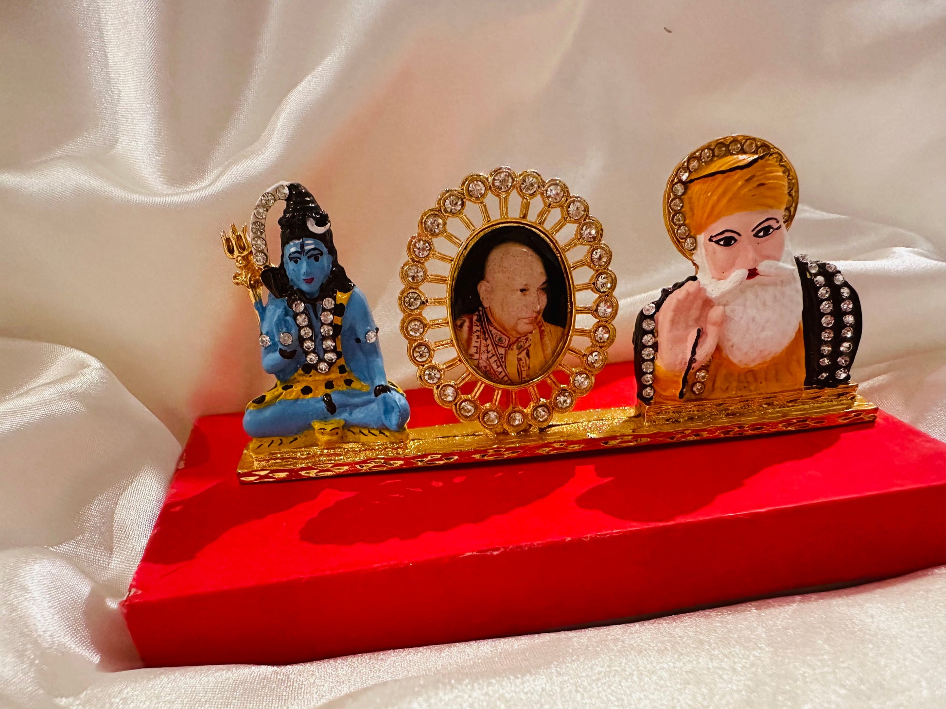 Jai Guruji car dashboard swaroop. Bring Guruji's divine energy into your travels with our specially crafted car dashboard Swaroops. These serve as a spiritual companion on your travels.