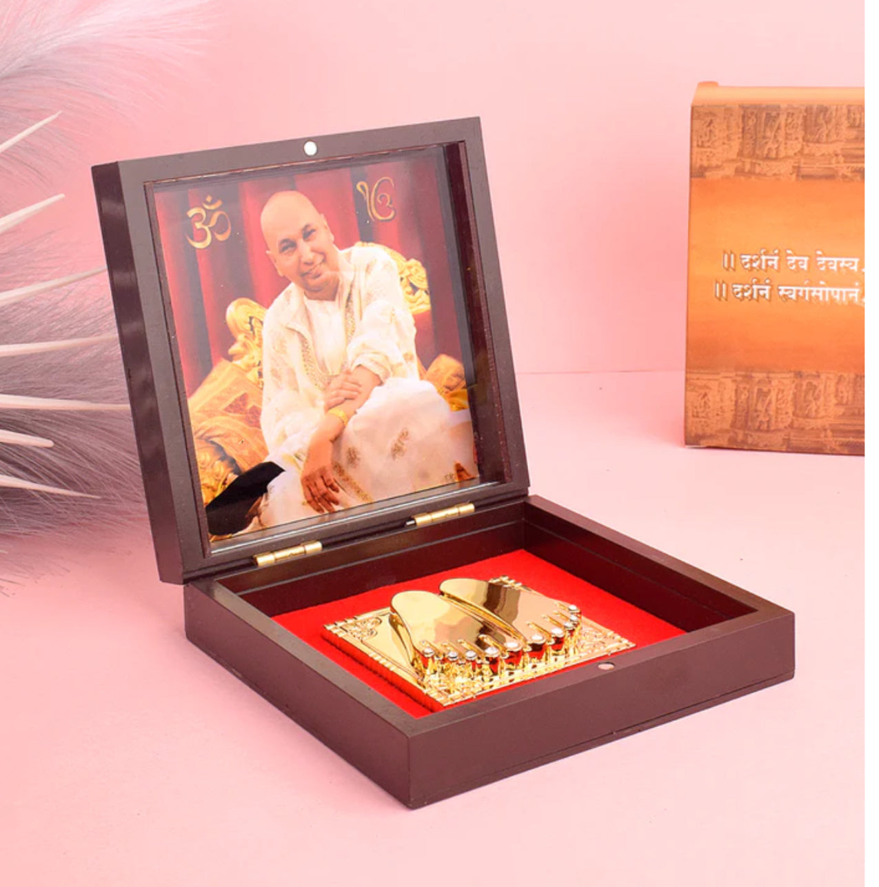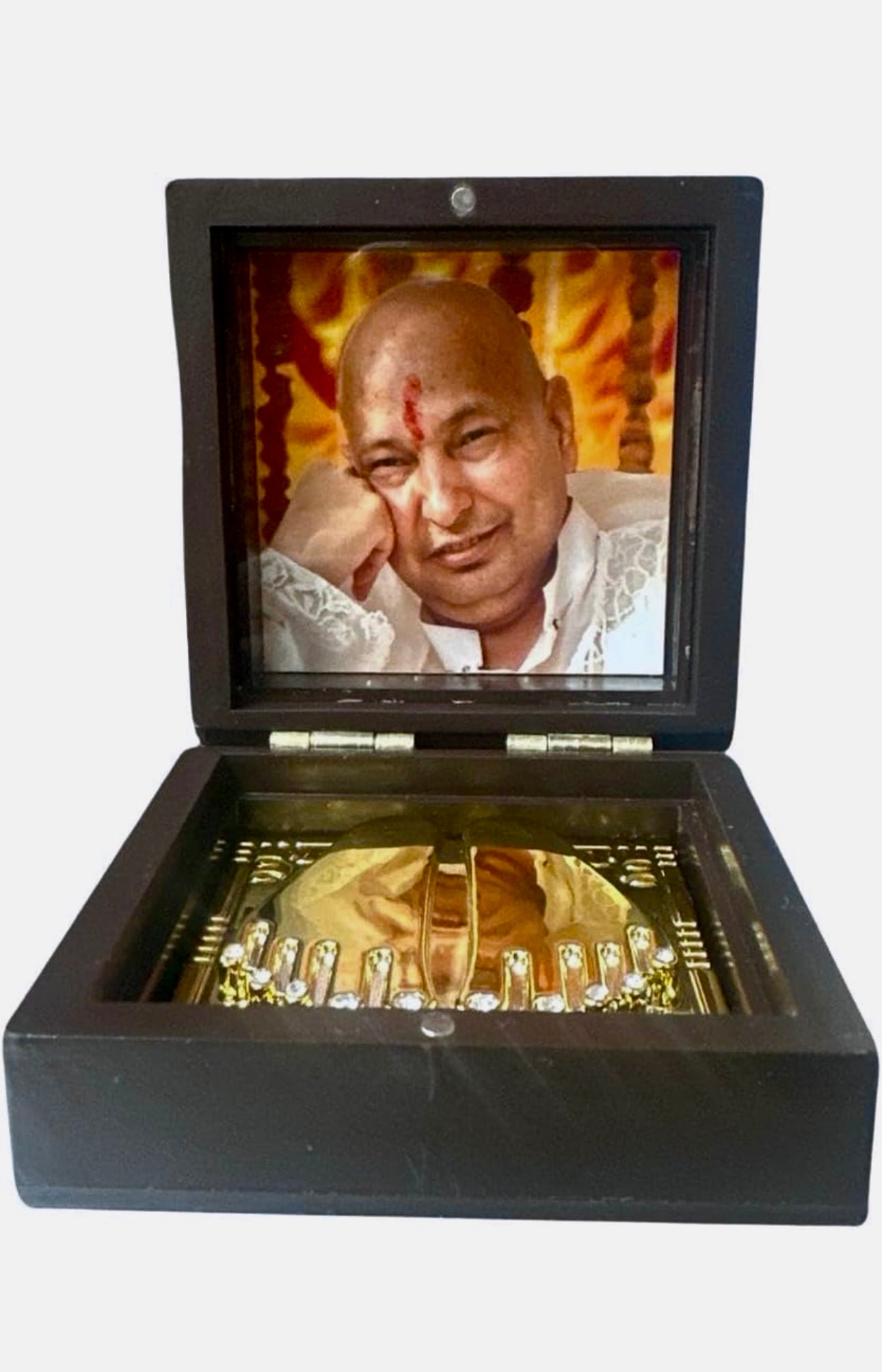 Jai Guruji swaroop- Specially designed Guru ji Swaroop Photo for your home, pooja room or office. Be close o Guruji wherever you are. Create a sacred space in your home with Guruji Charan box . These intricately crafted boxes house the divine footprints of Guruji , offering a tangible connection to his spiritual presence.