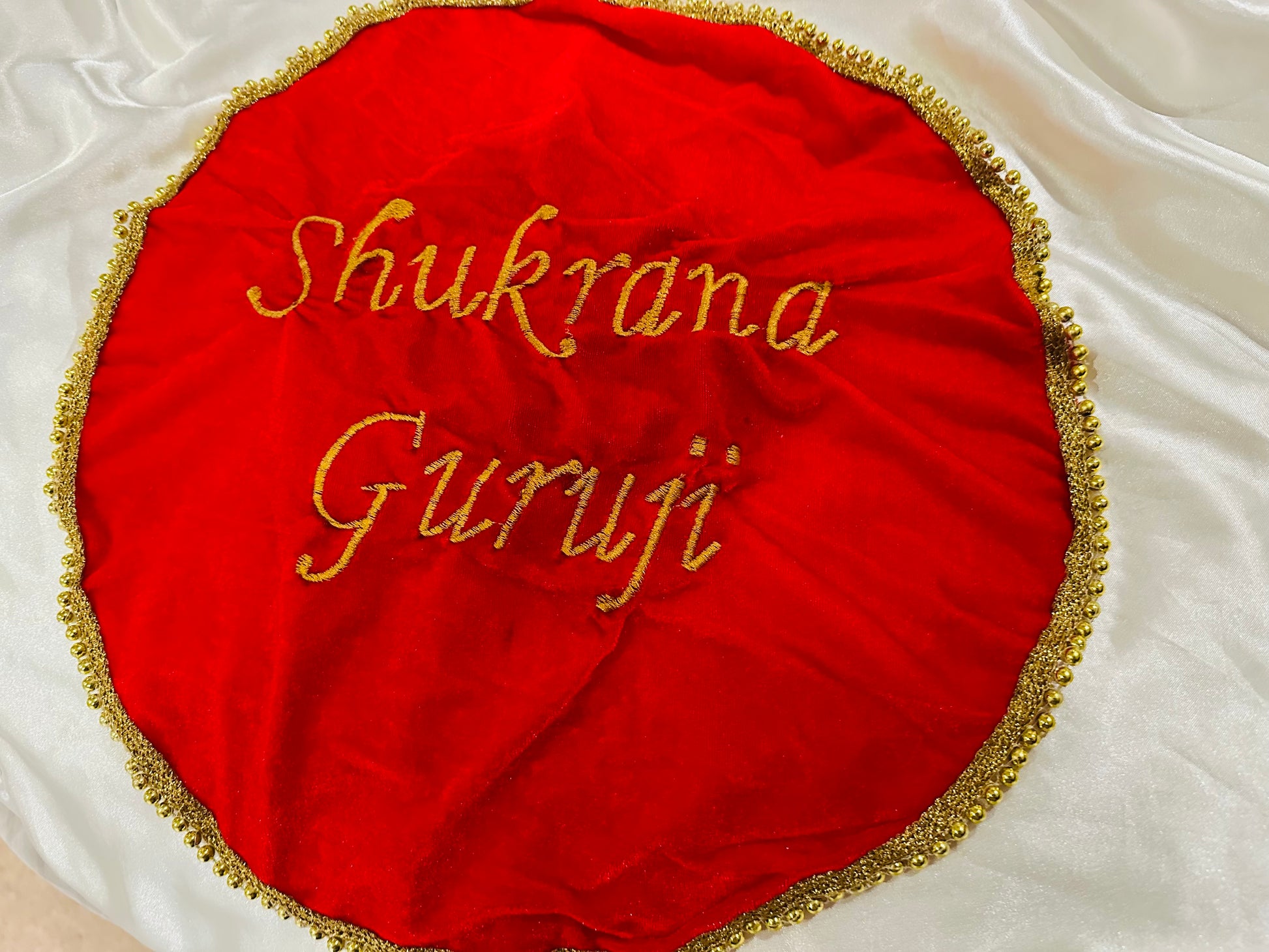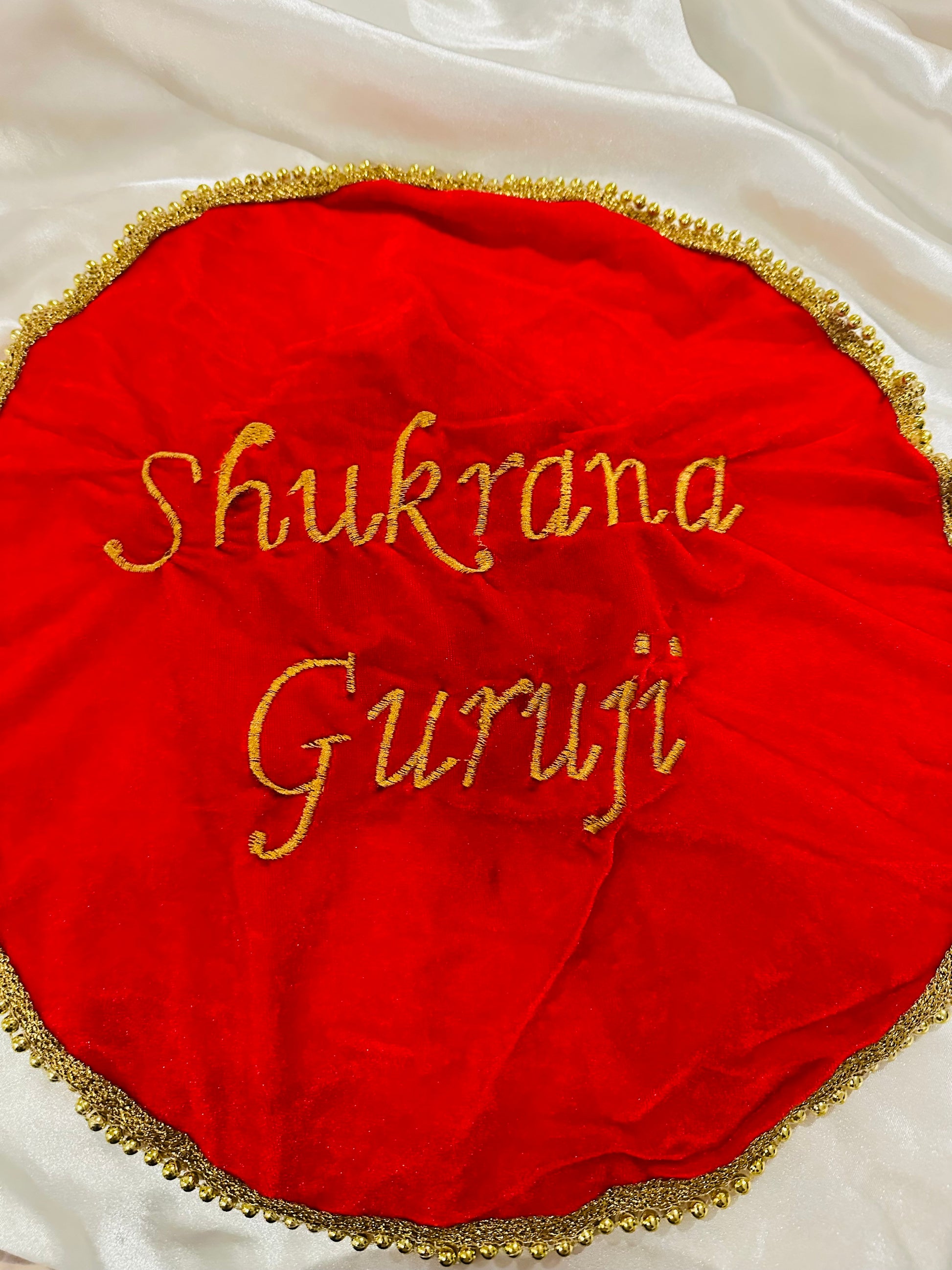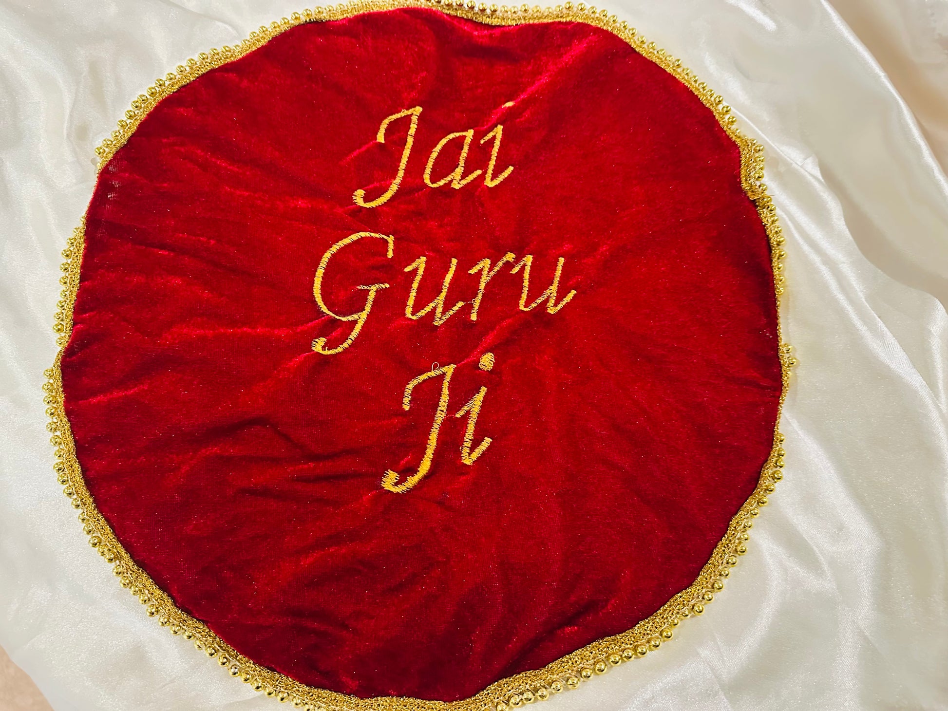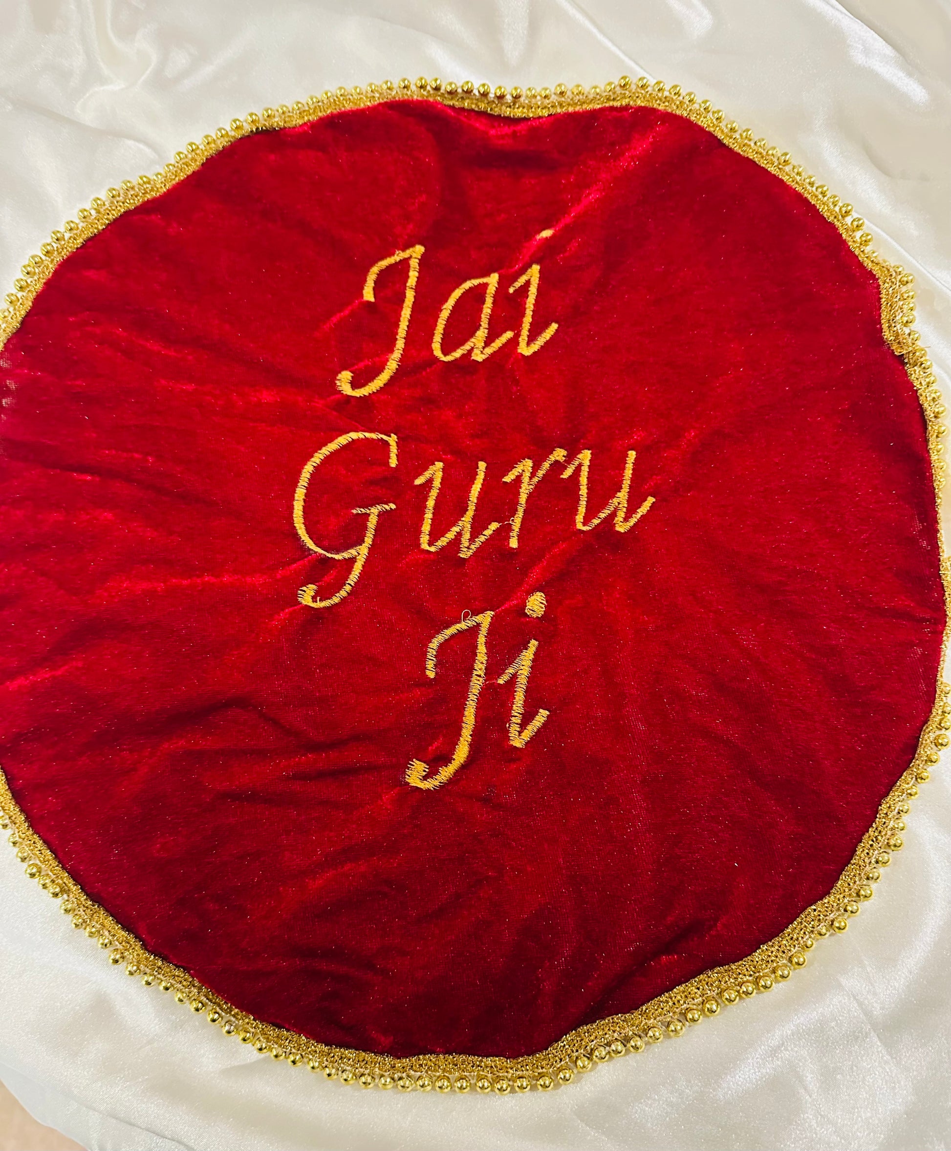 Jai Guruji Sangat ji! Beautiful Guruji message written covers to Protect and showcase your thaal in style with our Langar Thaal cover. Made from luxurious velvet and hand-embroidered with the Jai Guruji design, it adds an elegant touch to your Langar ritual. Keep tradition alive while preserving your thaal with this beautiful cover.