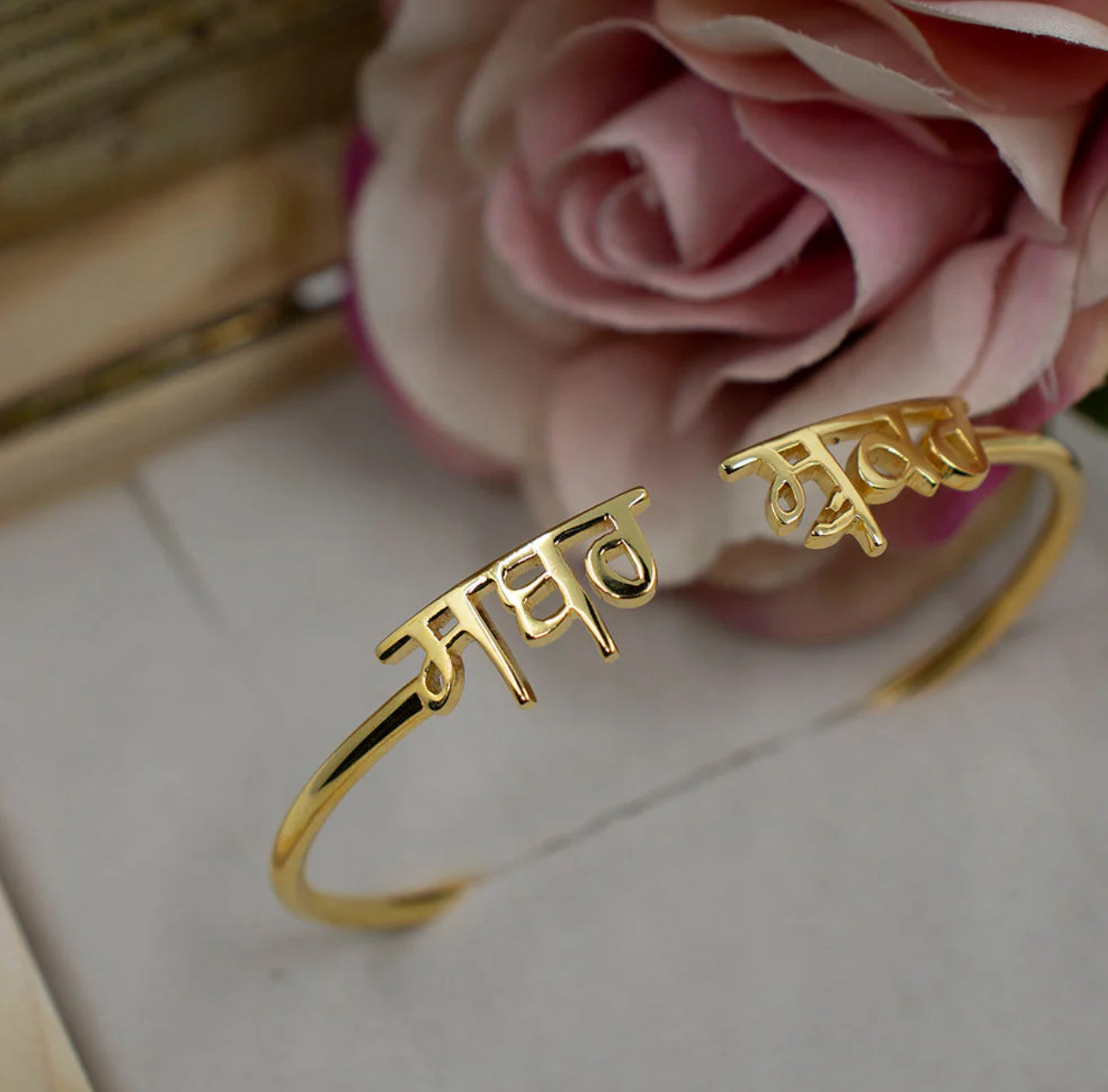 So glad you caught eyes on our Sabr Shukar Kara. In Gurmukhi, this means Patience and Gratitude. This cuff bangle embodies the power of these virtues and promotes a calm and grateful mindset. Wearing this will help you cultivate a patient and thankful outlook, leading to a happier and more fulfilled life.