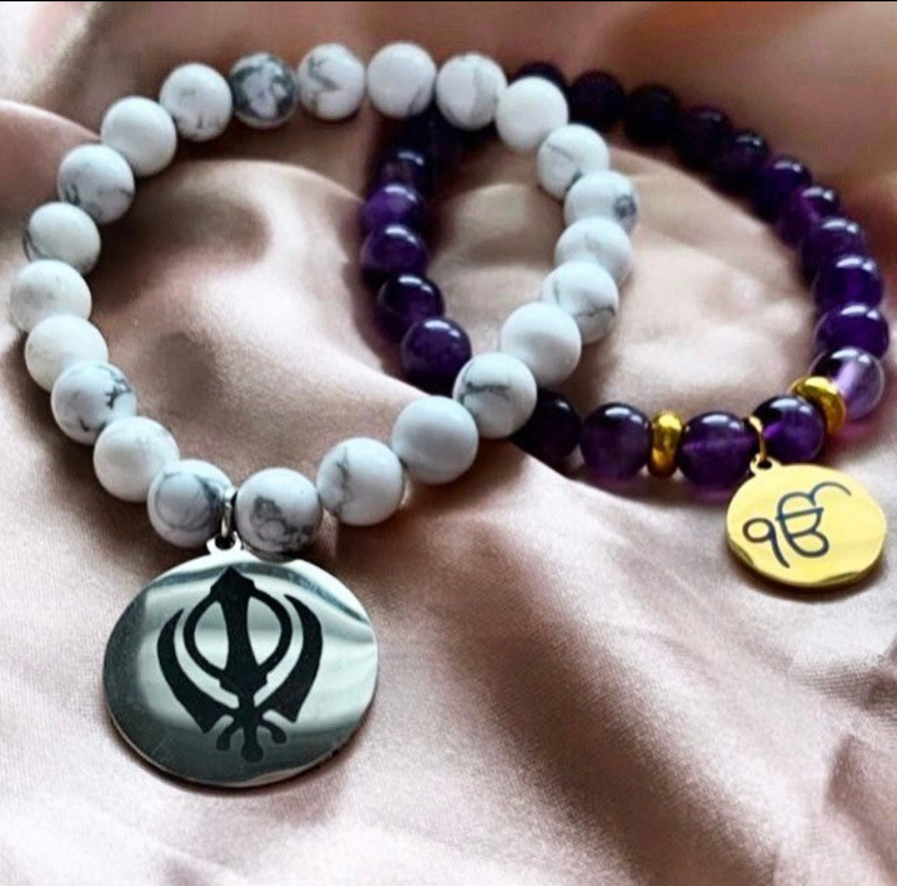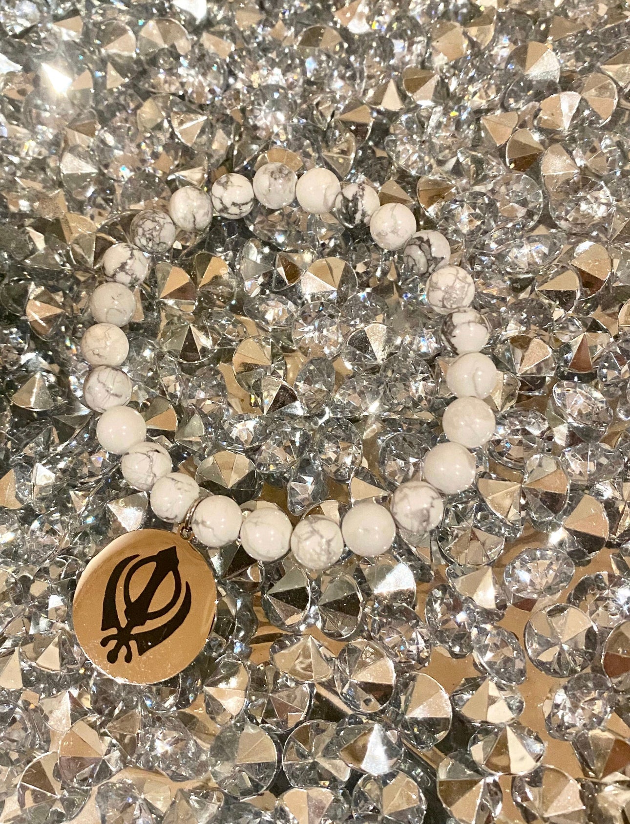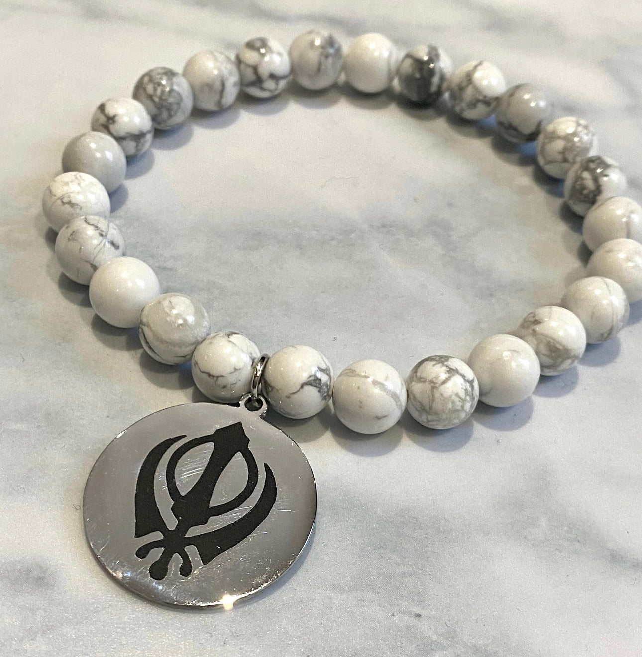 This beautiful bracelet pairs the powerful Howlite stone with Khanda charm. Whether you are buying this bracelet for religious purposes or style, I'm sure that you will be pleased.